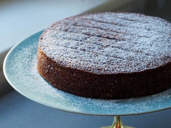 Afkøl 10 minutter i formen, inden kagen forsigtigt tages eller vendes ud og køler færdig på en rist.