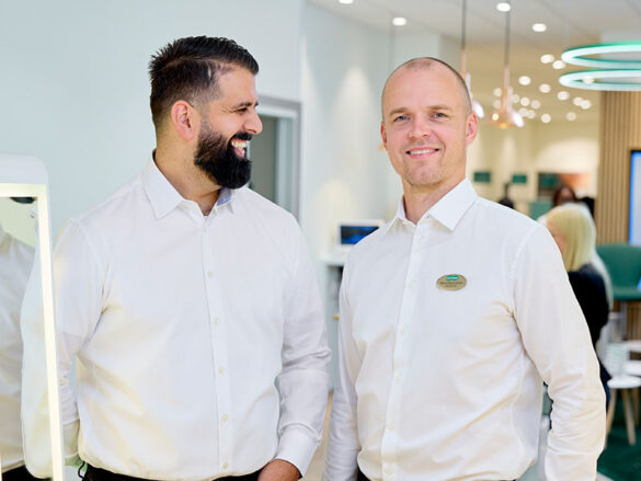 – Vi er eksperter i at finde ud af dine behov og så matche det med et af vores 1000 stel og de mange muligheder inden for glas og solbrilleglas. På den måde får du en brille, der passer perfekt til dit ansigt og din livsstil, siger Ronni Rasmussen. Haider Alzahawe tilføjer: