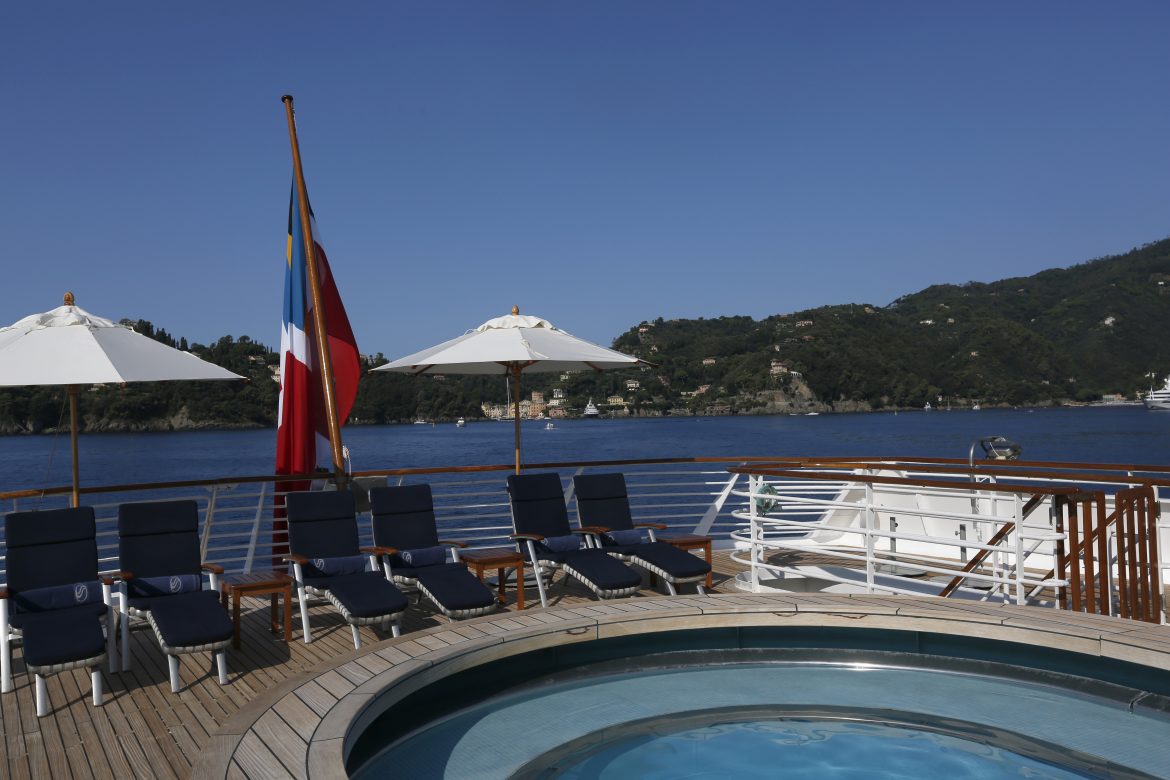 Næste dag er om muligt mindst lige så magisk. For vi er kommet til Portofino, som ligger gemt i et lille hjørne på den italienske riviera i et hyggeligt fiskerleje, hvor luksusyachts vugger side om side med små fiskerbåde. Det er en af den italienske rivieras smukkeste og mest romantiske små havnebyer med grønne skrænter og azurblåt, klart vand. Vi er de første på SeaDream der sejler ind, for dagen skal tilbringes på land. Vi skal vandre af de berømte, stisystemer med den smukke udsigt og besøge det legendariske Hotel Splendido. Hotellet har i over 100 år været det foretrukne hotel, når adlen, hollywoodstjernerne og andet godtfolk med god smag og penge ville feriere en måned eller to. Hotellet ligger højt hævet over Portofino bugten. Turen op ad bjerget til Splendido er stejl og varm men det hele værd. Udsigten fra hotellets terrasse er storslået og vi får os en drink og lidt at spise, mens vi nyder udsigten og Sea-Dream, der ligger og vugger derude.