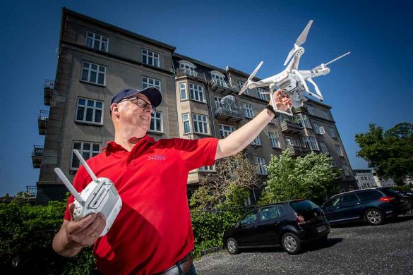 Falk Tag & Facade bruger en drone til at filme renoveringen af tage og facader, så man sammen med ugentlige statusbreve får en unik mulighed for løbende at følge med i byggeriet på ens ejendom.