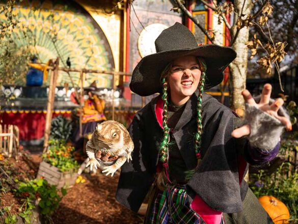 21-årige Flora Østergaard Weise er skuespiller til daglig, og i oktober måned træder hun altså ind i en magisk verden, når hun sammen med forlystelseshavens andre hekse skaber en fortryllende stemning i Halloween Tivoli. Flora spiller heksen Mælkebøtte, og i år er det tredje gang hun trækker i heksekostumet til Halloween i Tivoli. Hun siger om rollen som heks i Tivoli:”Jeg elsker denne tid på året, hvor haven forvandles til et eventyrligt univers fyldt med lys, græskar og mystik. Som barn husker jeg tydeligt, hvordan jeg selv gik rundt i Tivoli og ledte efter hekse. At jeg nu selv er en del af den oplevelse og give magien videre til nye børn og gæster, føles helt særligt.”
